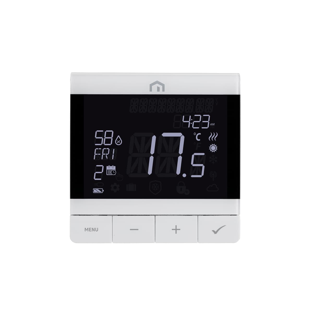 The Myson Unisenza Plus UFH Thermostat RF is battery powered with Zigbee 3.0 ideally for an underfloor hydronic radiant heating/cooling system. It is used for wireless control of the wiring center which works with boiler, pump and actuators for different zones.
