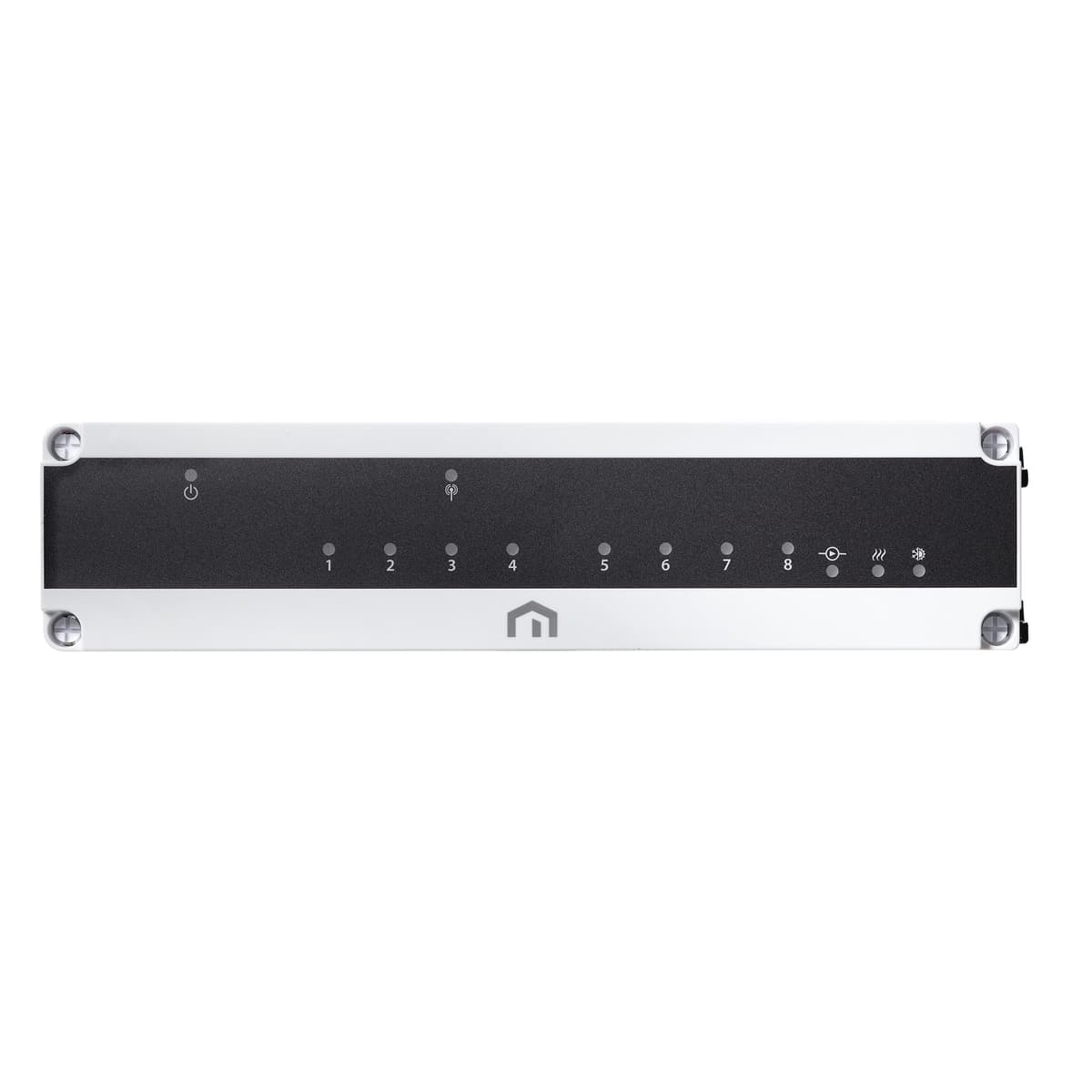 The Myson Unisenza Plus Wiring Centre can connect with up to 8 Unisenza Plus RF Thermostats, enabling safe, easy wiring for hydronic radiant heating and cooling systems. Mounted near the manifold to connect the actuators. It features outputs to switch a pump or boiler and a central input for easy changeover from heating to cooling .